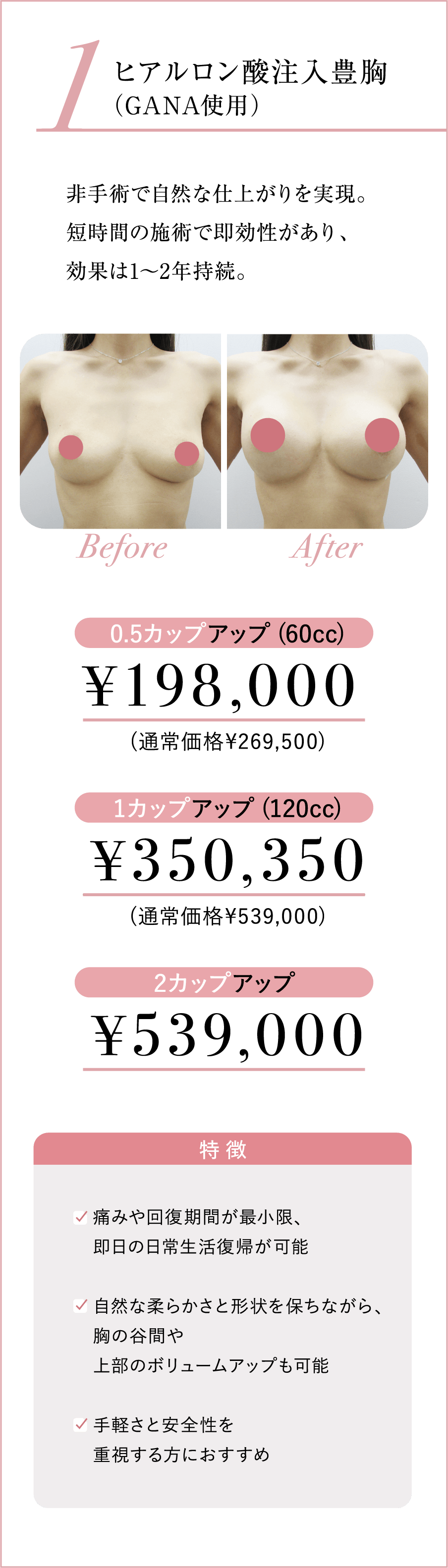 01 自然な仕上がり 02 安全性の高い材料 03 即効性と長期的効果 04 カスタマイズ可能 05 充実したアフターケア ご予約・お問い合わせ