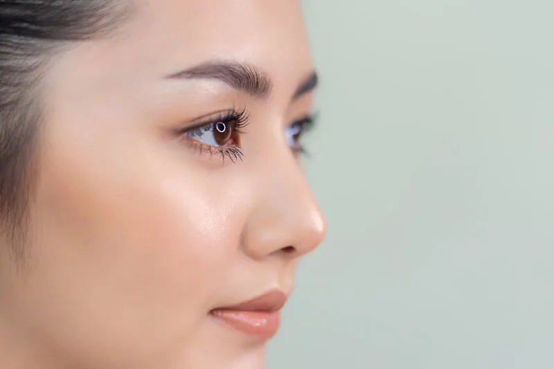 理想的な鼻の付け根の位置は、上まぶたと同じくらいの高さと言われています。鼻の付け根が上まぶたよりも上になると、顔がキツい印象になりやすいです。反対に鼻の付け根が上まぶたよりも下になると鼻筋が短く見えるので、幼い印象になってしまいます。
