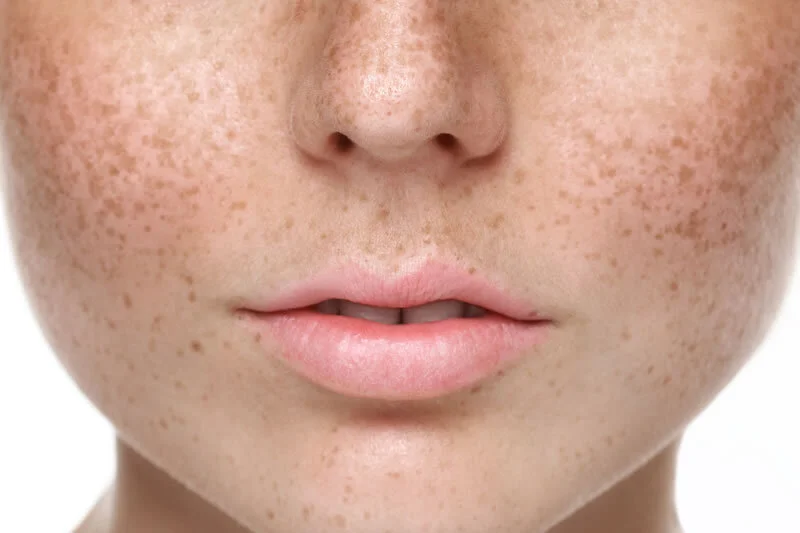 そばかすは皮膚組織にメラニン色素が沈着して発生する直径2~3mm程度の薄茶色の斑点です。