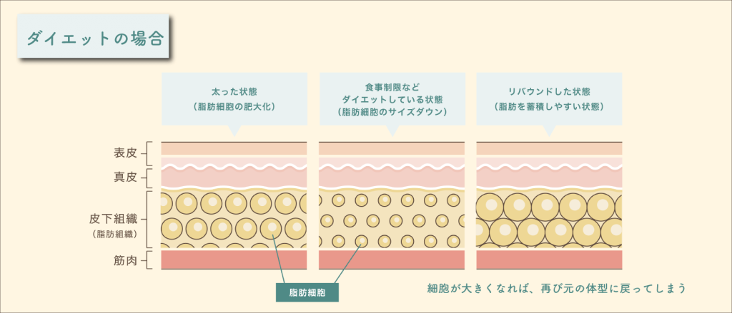メリット:基礎代謝の向上により、長期的な体型維持が可能。