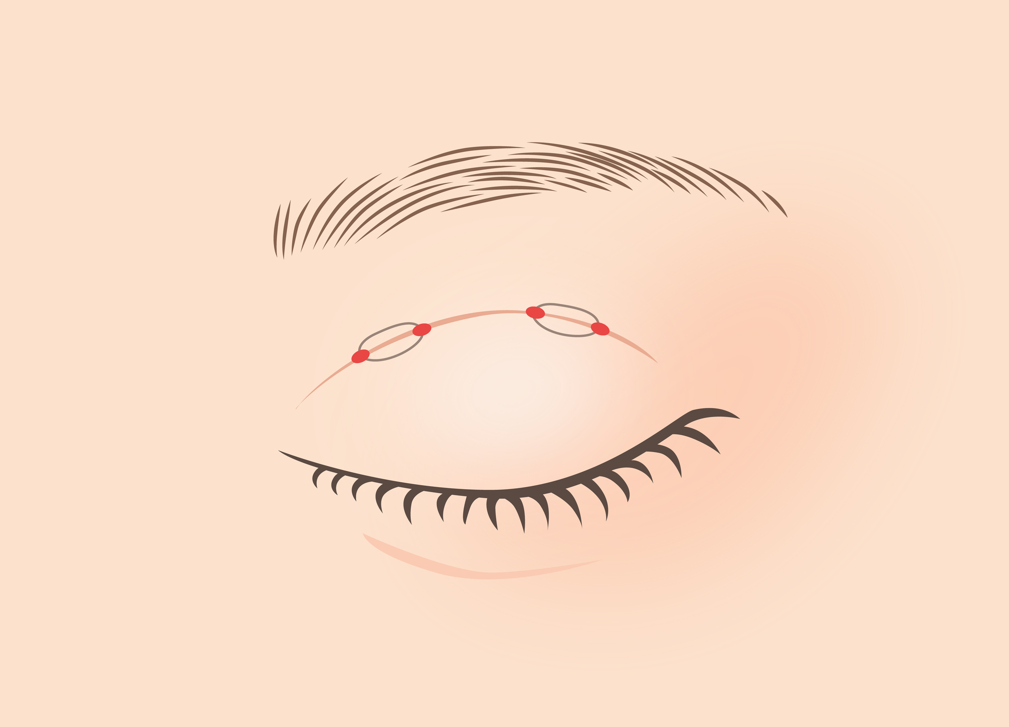 二重埋没法では、上まぶたの皮膚側から瞼板(まぶたの軟骨)までを糸で結ぶことで、人工的な癒着を作り出します。これにより、目を開いた際に糸で結んだ部分が引き込まれ、二重のラインが形成されるのです。